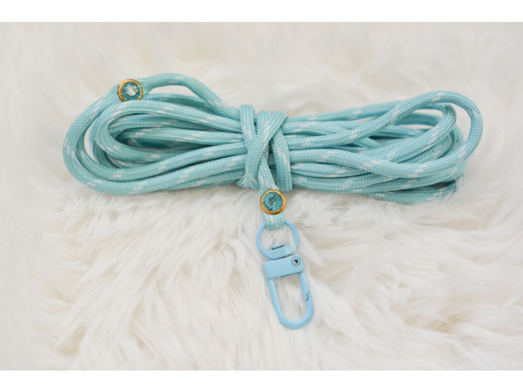 Naše elegantní ale jednoduché tyrkysové vodítko s diamanty je ideální volbou pro každého králičího parťáka. Kombinace tyrkysové barvy s bílými detaily a diamantových patentů se zlatým kováním zaujme na první pohled – ať už jste na procházce nebo na závodech.