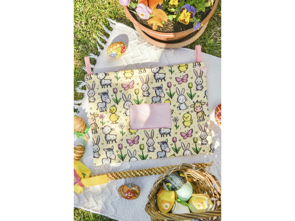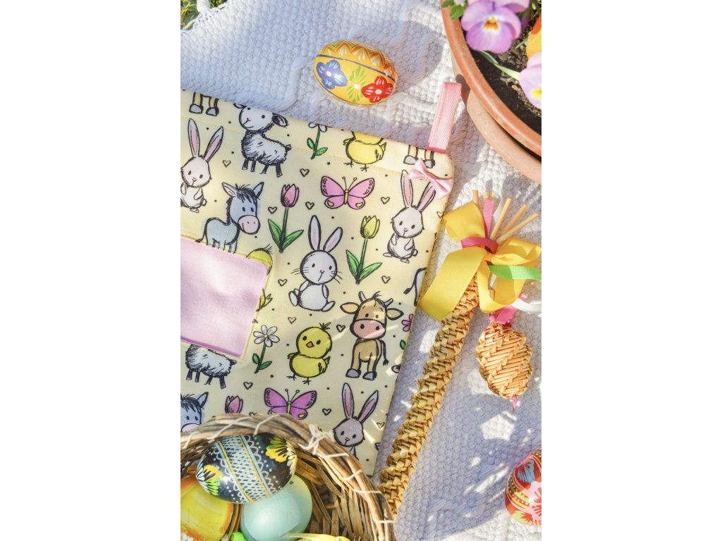 Roztomilý jarní vzor na látkovém seníku pro králíčky a drobné savce.